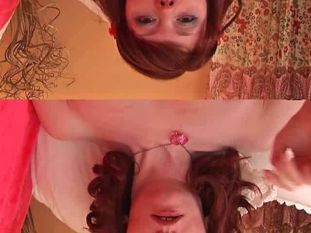 Russian petite girl with red hair is playing with her snatch