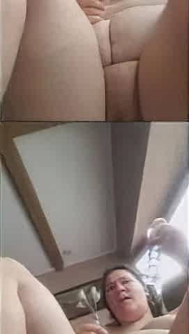 A brunette hair washes and then cums in the bath. A shaggy snatch masturbates.