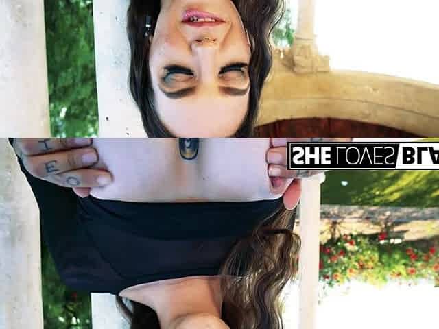 Inked Rocky Emerson Flaunts Her Bald Cunt In A Public Spot