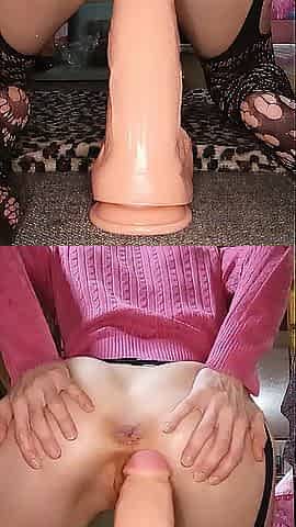 Glamorous Creamy Cunt and Oiled Up Butt Riding Sex-toy