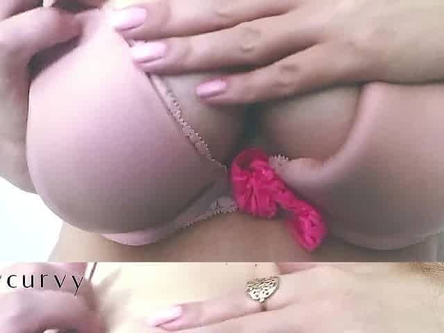 Blond Carlycurvy uses tiny pink sex toy on large bazookas and snatch