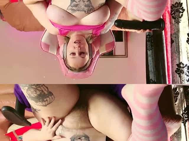 My constricted vagina ride a massive vibrator , bottom view