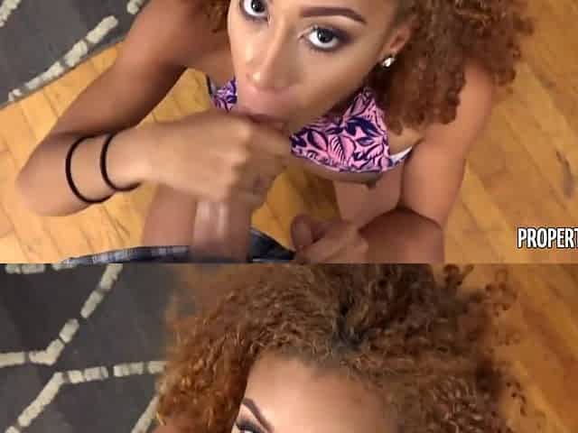 Curly Hair Ebony Gives Head And Boned By Nasty Pawn Man