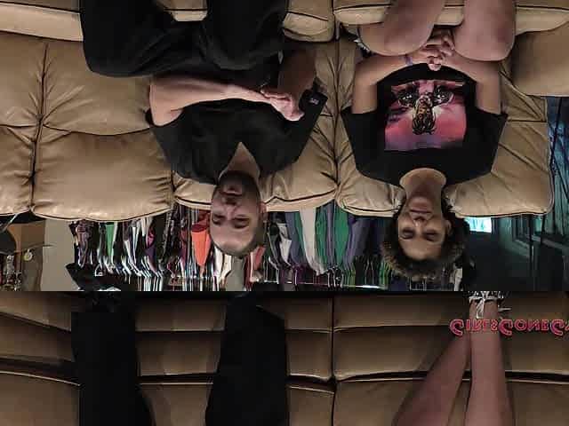 Hotty with split tongue licks a sweetmeat and puts in butt