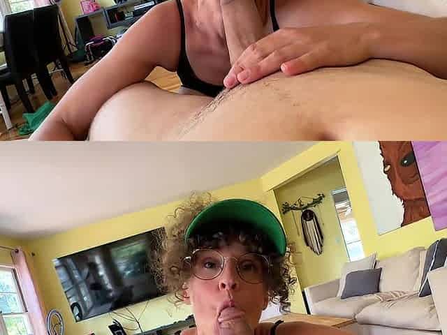 Cheating super-bitch wife in pantyhose gives suck off and pop-shots on tits, fledgling POV blowjob, muddy girl.