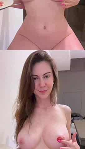 Curvy brunette Alexya demonstrates her gigantic saggy boobies