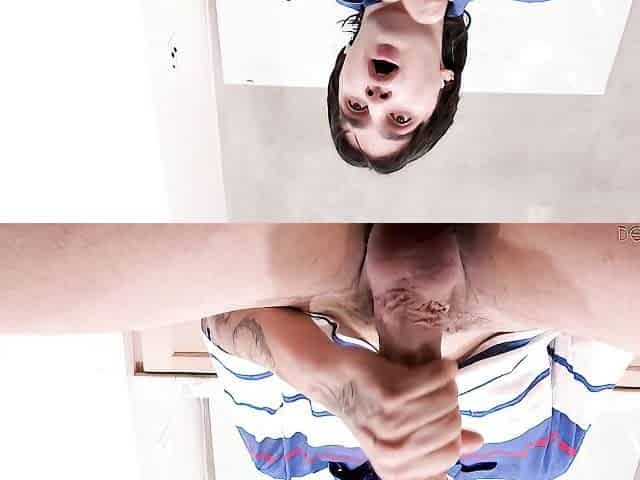 Curly Haired Sarah Lace Massages Cock for Facial - StrokiesHandjob