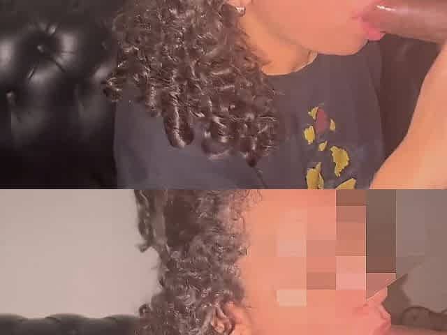 Curly hair babe sucks his soul out