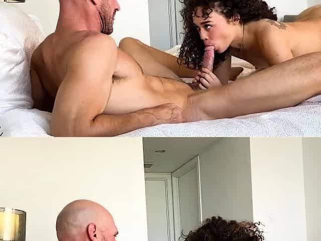 Girl With Curly Hair Gets Her Tight Holes Smashed By A Handsome Guy On The Bed
