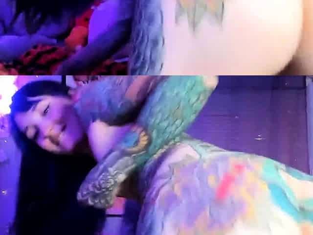 Tattoo lady with split tongue and wild alternative nymph nervously watches as her thick donk stepsister's curly hair nip piercin