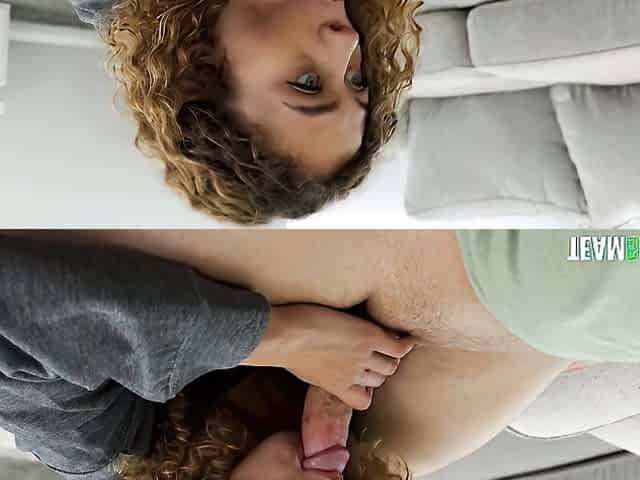 Curly step sister gives head previous to shlong bouncing in POV