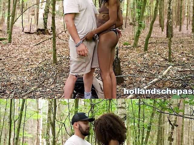 Curly ebony Milu Blaze is fingering her pussy among bamboo outdoor