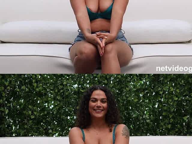 Curly tanned bitch enjoys her pussy pounded on the Casting Couch