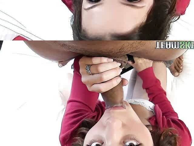 Gorgeous curly haired beauty deepthroats random guy POV
