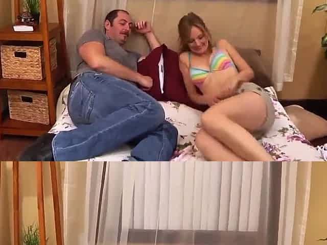 Stepsister shows up her pussy to her stepbro and gives him a boner