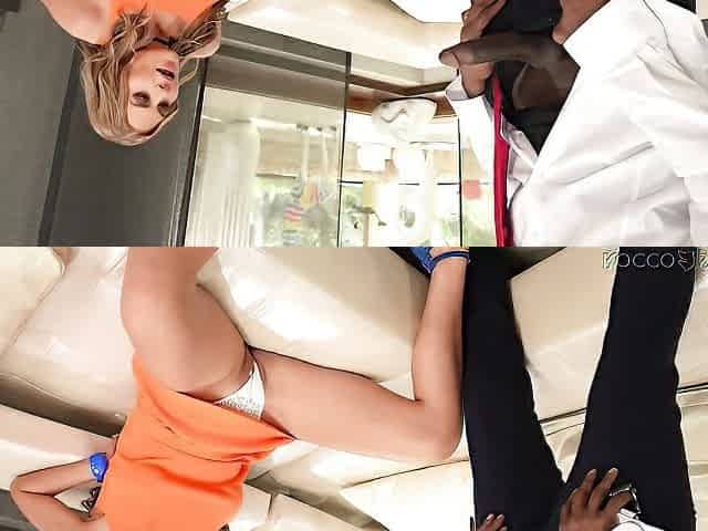 Lusty big boobs blonde Scarlett Monroe fucked by three blacks