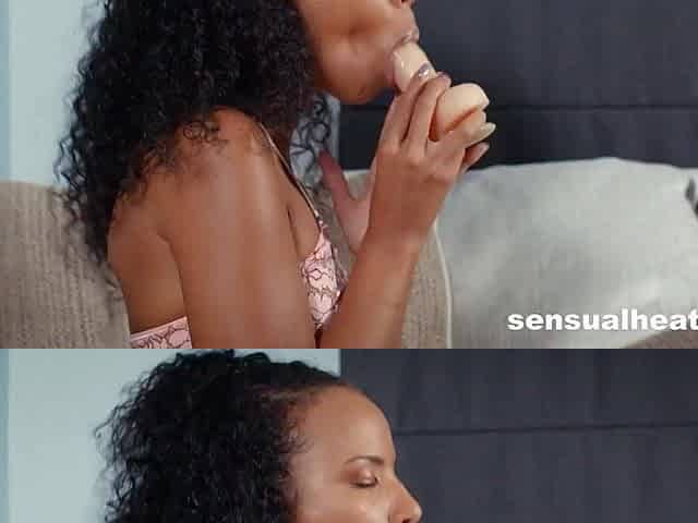 Curly-haired ebony Luna Corazon trembling on her orgasms by
