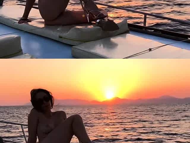 Stunning busty brunette Nala impaled in the cowgirl pose by big cock