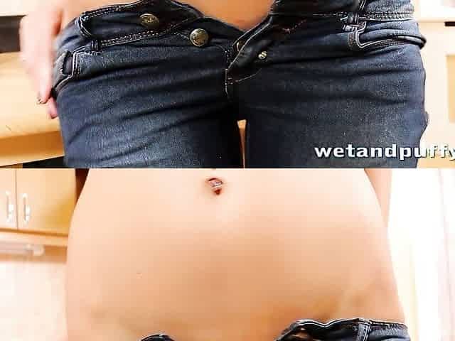 Passionate teen brunette Dharma Jones likes stimulating her wet hole