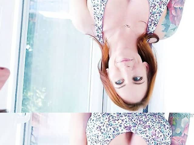 Redhead babe with shaved pussy Selena Sparkle plays with her crack