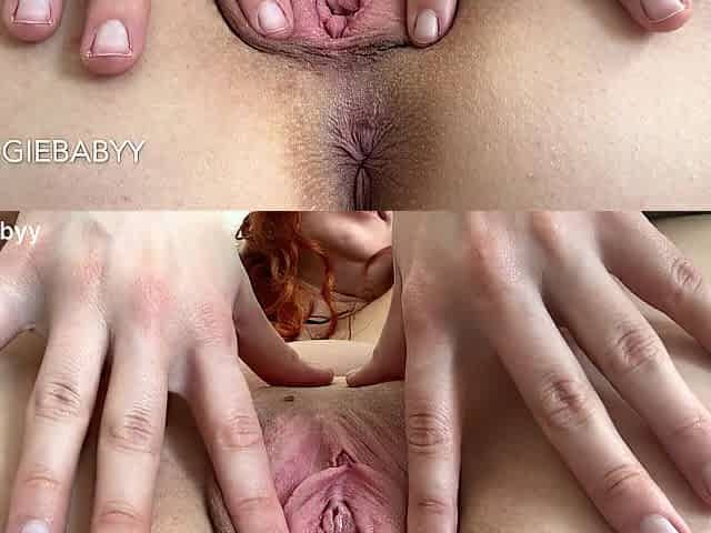 Curly vagina getting stretched out and mutual masturbating with spunk flow