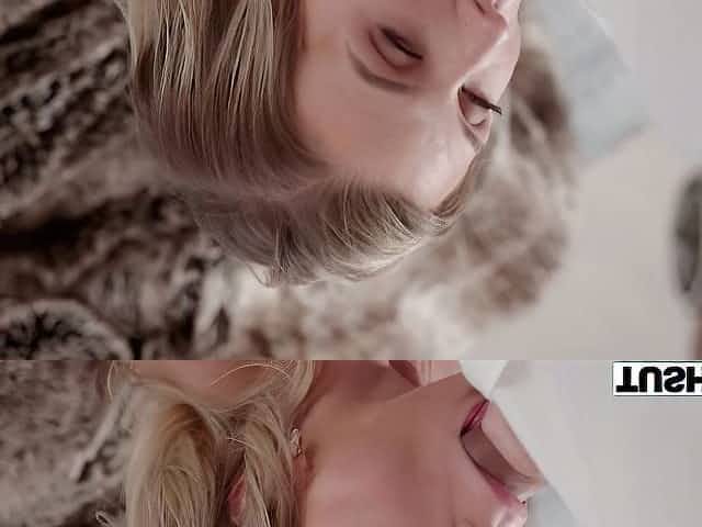 An awesome blonde model Lynn Stone opens her crack for a long penis