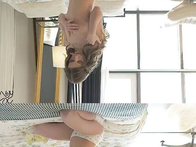 Cutie blonde Violetta Pink takes off her panties just to masturbate