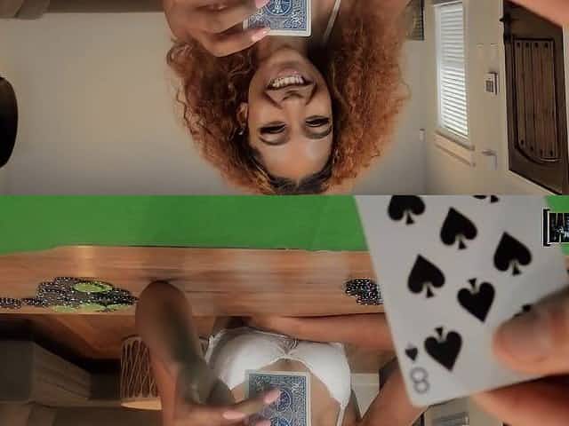 Lost card game curly black hottie stripteases and gets nailed doggy