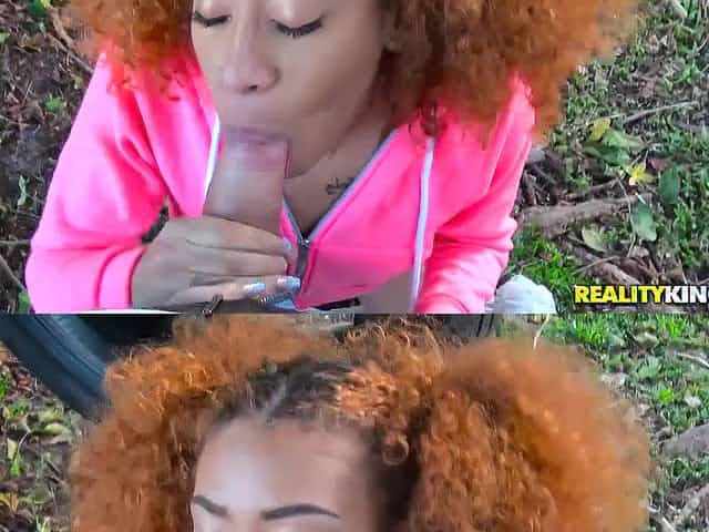 Curly hair girl Kendall Woods sucking and fucking outdoor, she like it