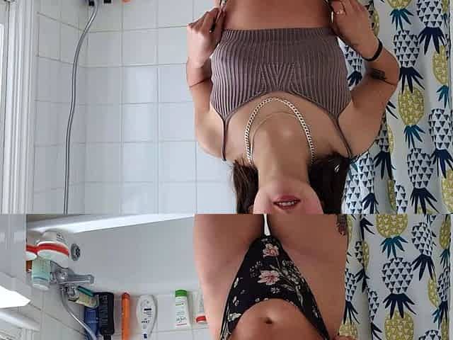Gorgeous blonde Katie Thornton takes a shower in a hot way