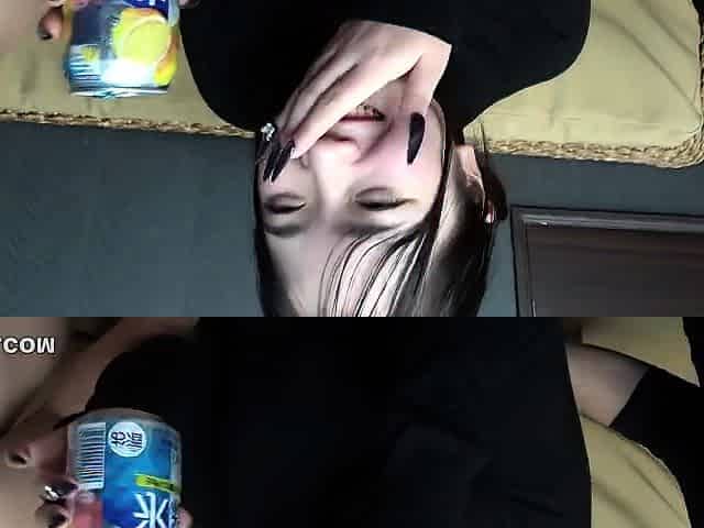 Beautiful Tiny Emo solo play with a big dildo by her self