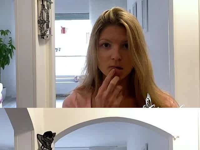 Cutie blonde Nikoletta Queen knows how to touch her shaved pussy