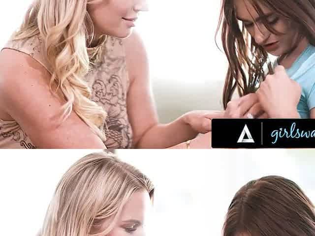GIRLSWAY - Pretty 18yo Babysitter Seduces Her Stacked MILF Boss Rachael Cavalli! HARD PUSSY EATING