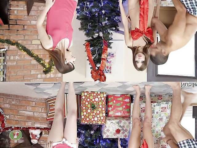 Gorgeous teens Ember Stone and Riley Reid share a massive dick