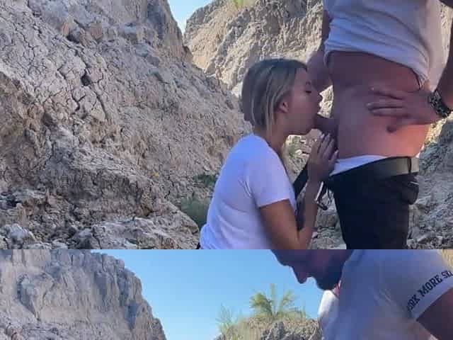 Blonde Babe Sucks a Big Cock Outdoors in a Canyon