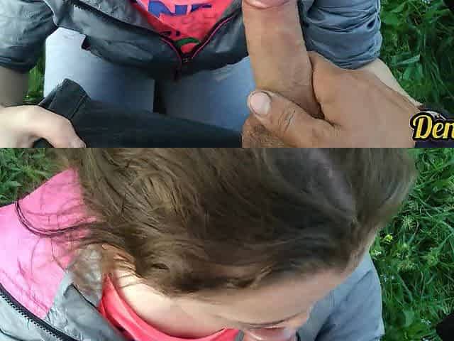 прекрасный миньет от миленькой школьницы на улице возле мотоцикла всё личико залито спермой