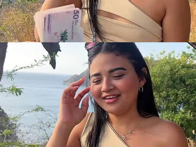 Beautiful tourist is unfaithful to her husband with a stranger for money