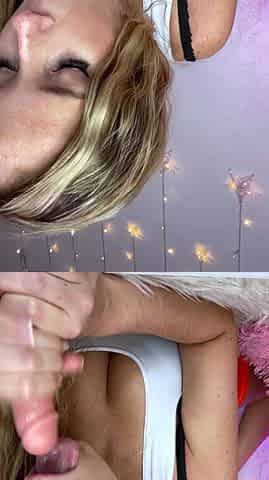 Blessed with huge naturals teen gives tits fuck and begs for cumshot