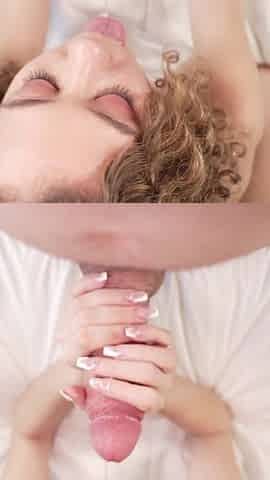 Teenage beauty gives blowjob