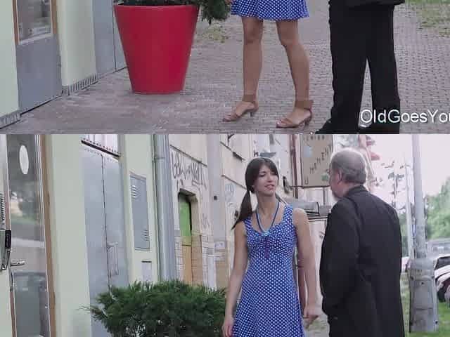 Young Marisa was feeling pretty horny and even though this dude was old she had to suck on his cock!
