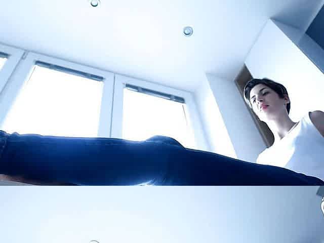 The girl does gymnastics in the room and the dirty old man shows him his cock and fucks her # 4