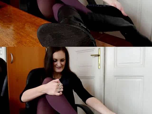 Seducing you with her sweaty feet in worn pantyhose, POV