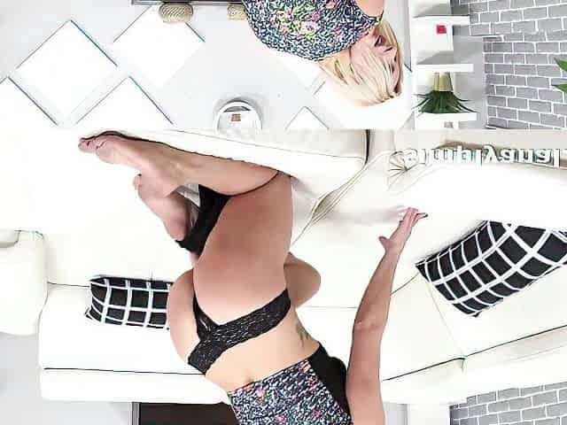 Czech PAWG Zuzu Pleasing Masturbates in Blue Underware, Nylons and Suspenders