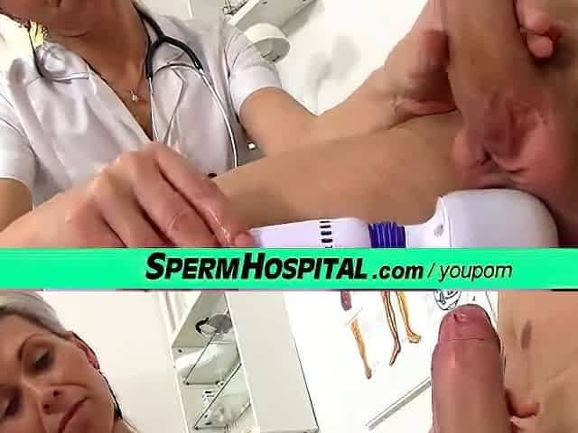 Bossy head nurse milf Renate tugjob with young male