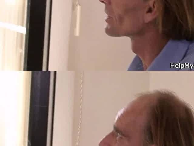 Old husband watching his young wife fucking