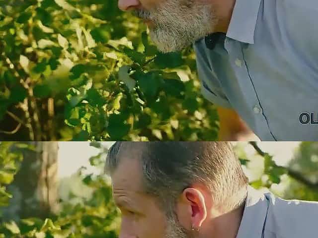 OLD4K. Gal with glasses drilled by friends old dad in the fresh air - Amateur