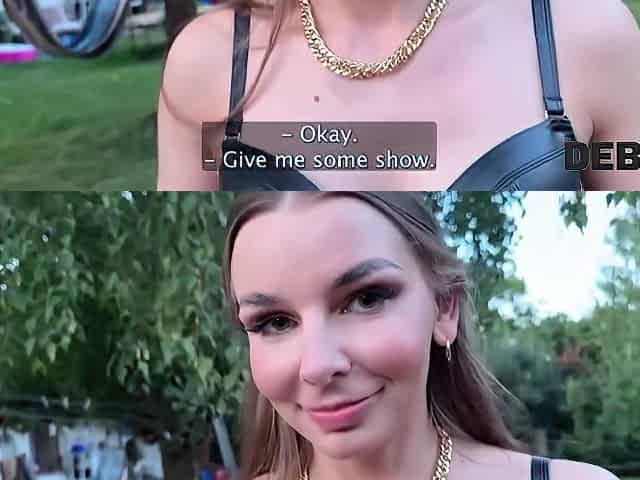 HUNT4K. Pleasing Una Fairy is not likewise shy and showed her boobs and cunt in public