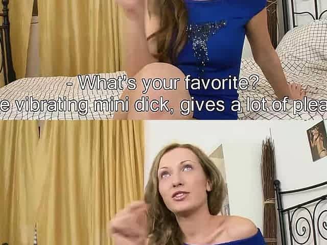 Busty blonde Barra Brass from the Czech Republic gets stretched out by a thick dildo