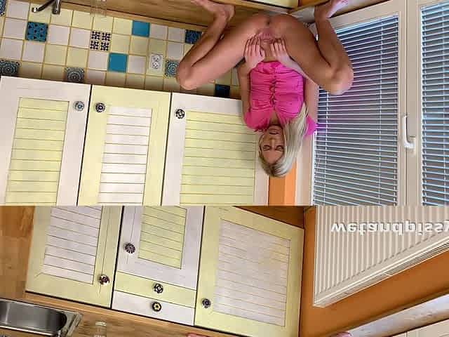 Shaved czech babe Claudia Macc masturbates in the kitchen