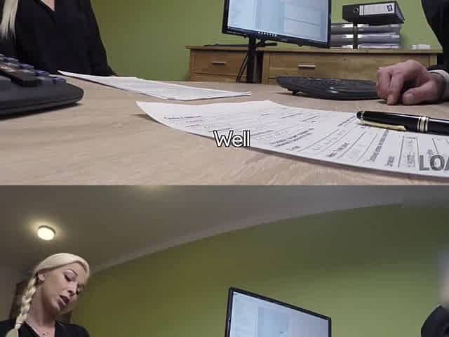LOAN4K. Blonde-haired miss has sex for cash with handsome loan agent